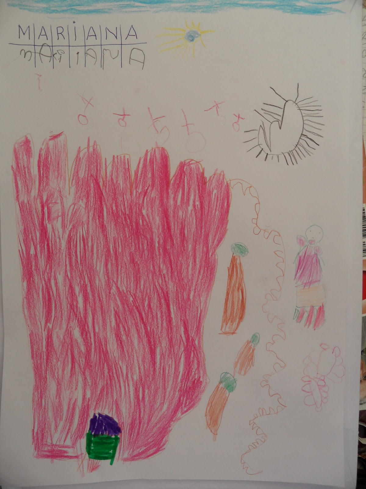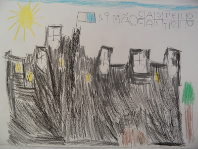 Já na escola, os meninos e meninas registaram através do desenho a visita ao castelo. Cada um reproduziu a seu gosto e houve até quem nem se esquecesse de desenhar as seteiras.