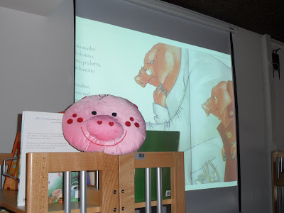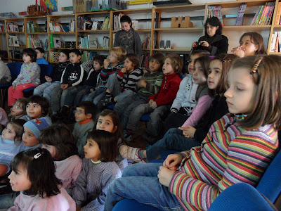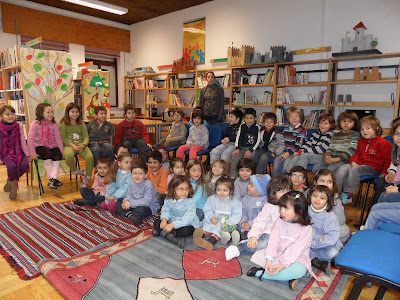 Hoje os meninos e meninas do pré-escolar e do 1º ano do 1º CEB, foram à Biblioteca da Escola, convidados pela Professora Anabela Lopes, para ouvirmos a Contadora de Histórias Ana Esteves contar a história