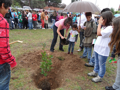 No final da manhã ainda houve tempo para plantar um CARVALHO. O outro nome que esta árvore vai ter é "ÁRVORE DO CENTENÁRIO". A Matilde ajudou a pôr terra boa na planta.Clica para aumentar