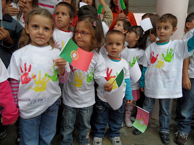 Vestimos as t-shirts e levámos as bandeiras portuguesas que tínhamos pintado com as nossas mãos.