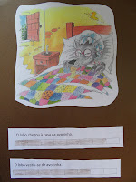 ... trabalha-se, neste ano lectivo em especial, aquilo a que chamamos a consciência fonológica (silábica e frásica). E o que é isto, na verdade? Para que a Ana consiga articular correctamente uma palavra, não basta conseguir fazer bem o som do fonema (letra). É preciso que a saiba aplicar na palavra e, consequentemente, na frase. E para articular bem uma palavra, e mais tarde aprender a escrevê-la segundo as regras ortográficas, é, de igual modo essencial que reconheça que esta está dividida em pequenos sons (sílabas) que, juntos, formam um todo. O mesmo acontece com a frase. está dividida em palavras que se juntam e fazem sentido. Algumas destas palavras são muito pequeninas, são partículas de ligação, tais como o "a", o "de", o "para",que, pelo seu tamanho e posição na frase, são esquecidas por crianças como a Ana, que ainda não as percepciona, com a sua capacidade auditiva, convenientemente.